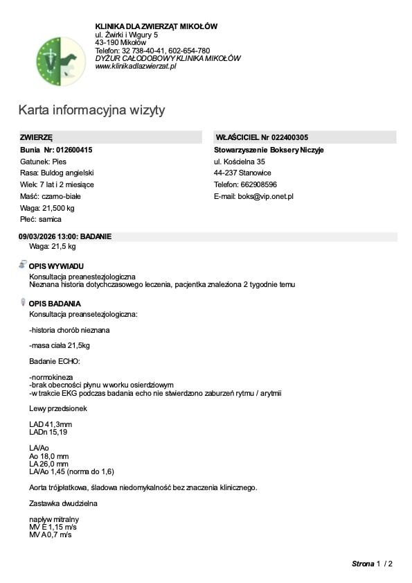 Bunia – wieści po kontroli kardiologicznej