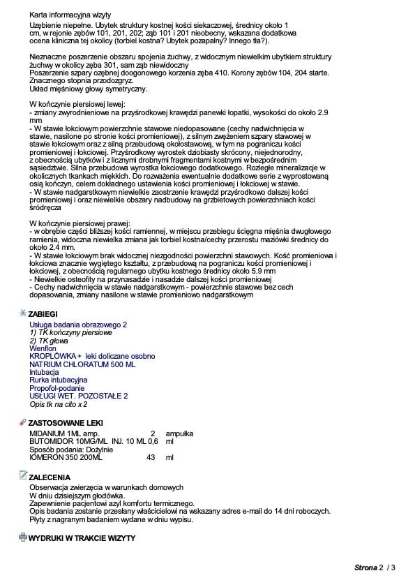 Badania wykazały zmiany w przewodach słuchowych, ich niedrożność oraz mineralizację, co wskazuje na długotrwały, nieleczony stan zapalny. Leczenie jest już wdrożone, ale możliwe, że konieczne będą dalsze zabiegi.