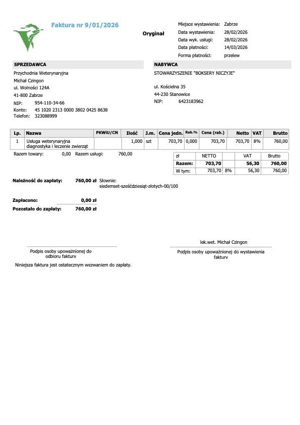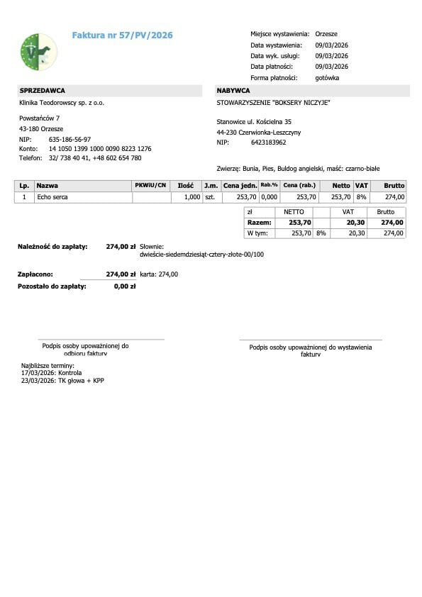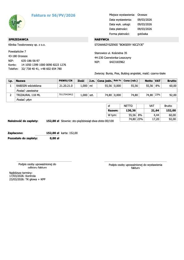 W najbliższym czasie będziemy publikować dokumentację wizyt oraz faktury, aby pokazać Wam dokładnie, jak wygląda leczenie Buni i z jakimi kosztami się wiąże.