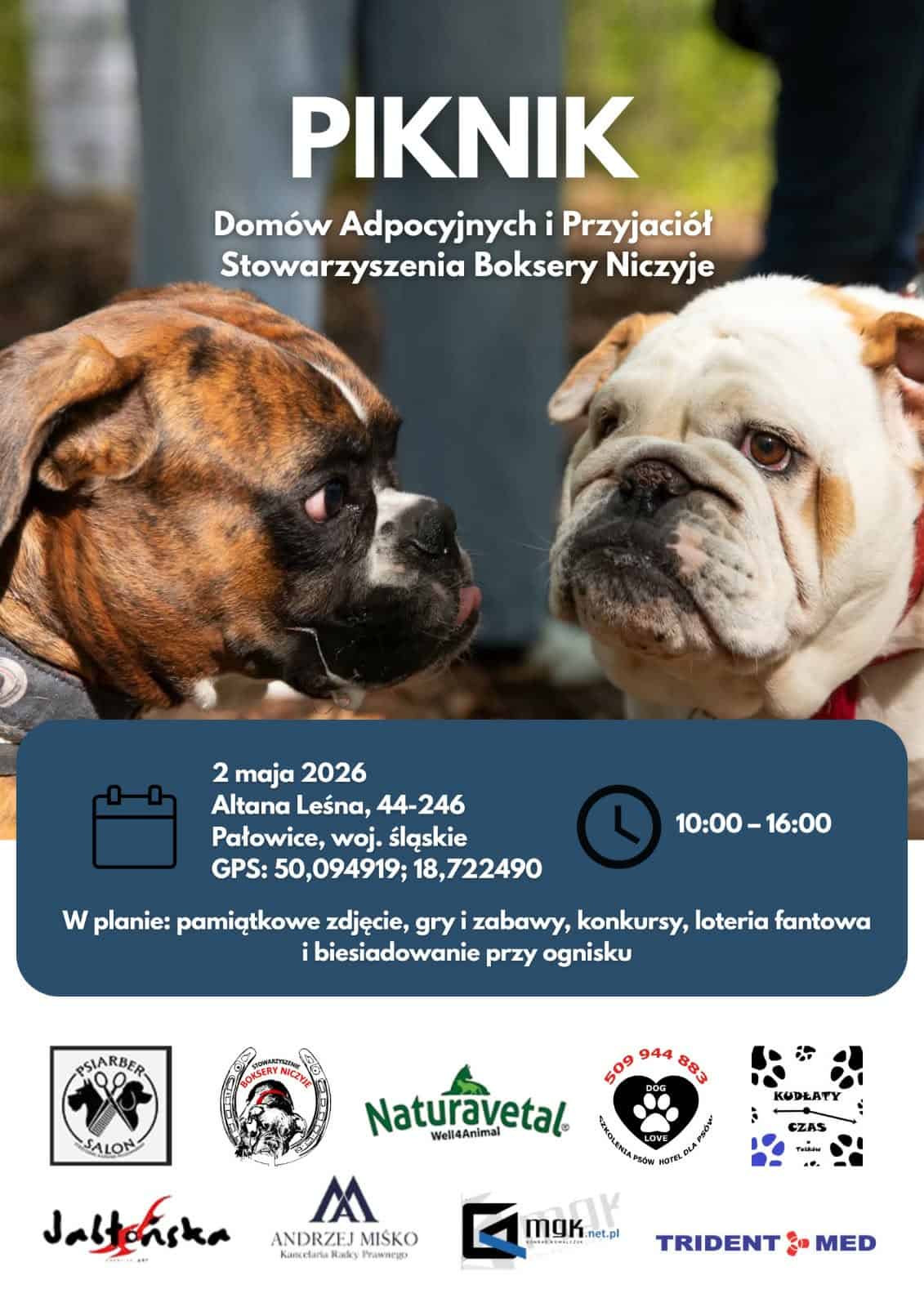 Już 2 maja 2026 zapraszamy Was do Altany Leśnej w Palowicach (woj. śląskie) na dzień pełen dobrej energii, rozmów, śmiechu i… oczywiście bokserów.